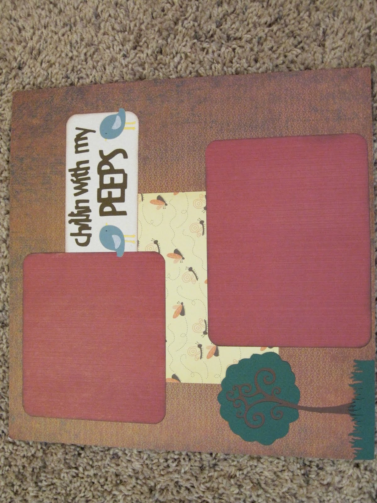 The first page is for my sisters book (5 pages done, I'm hoping to have about 18 done before she gets home) She has been sending a lot of photos with other missionaries so I thought this would be cute. The tree, sentiment and the birds are from "Straight from the Nest".